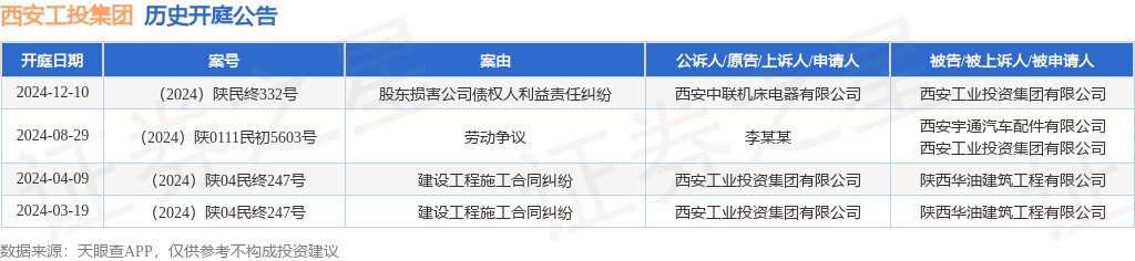 本站消息,根据天眼查APP显示,近日公布了一则西安工业投资集团有限公司作为被告/被上诉人的开庭公告,详细内容如下: