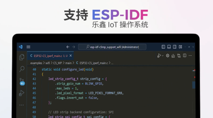ESP32-C5由乐鑫物联网开发框架ESP-IDF提供软件支持。用户也可以通过乐鑫ESP-AT和ESP-HostedSDK,将ESP32-C5作为外部主机的协处理器使用。